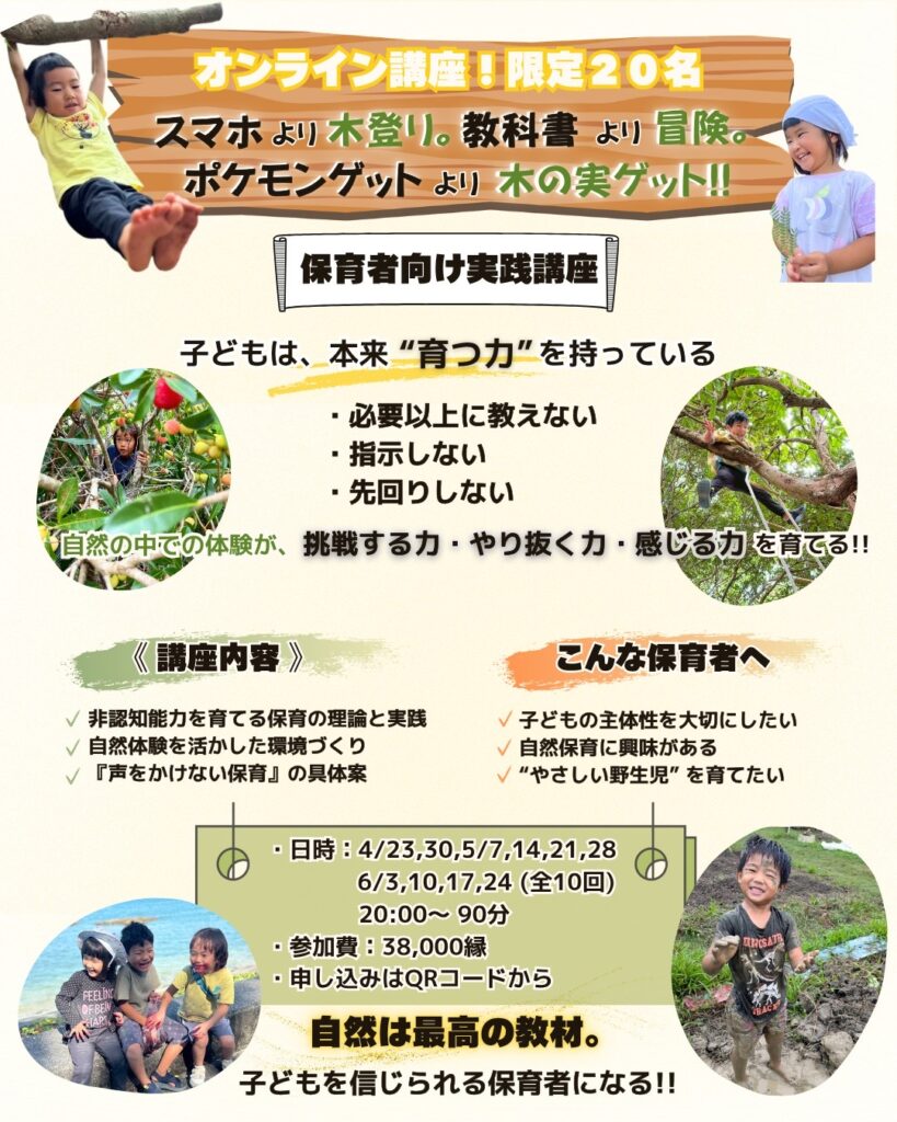 【オンライン講座】〜優しい野生児の育て方〜スマホより木登り。教科書より冒険。ポケモンゲットより木の実ゲット。