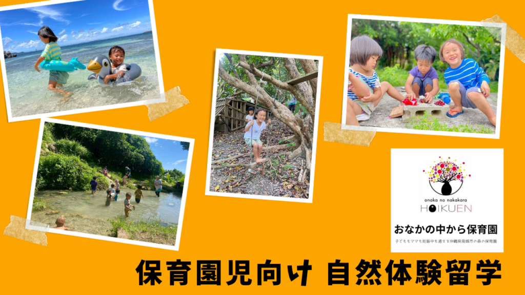 『おなかの中から保育園☆自然体験留学』では、1週間〜3週間ほどのお好きな期間。沖縄県南城市の豊かな自然や"おなかの中から保育園"を存分に味わうことができるプログラムです。